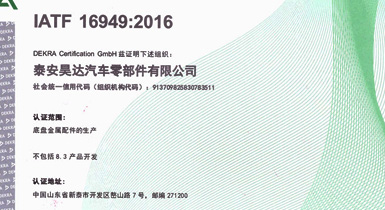 公司擁有IATF16949:2016國際標準質(zhì)量管理體系認證,精良的設備、先進的生產(chǎn)工藝及完善的質(zhì)量檢測保證了公司產(chǎn)品的可靠品質(zhì)...
